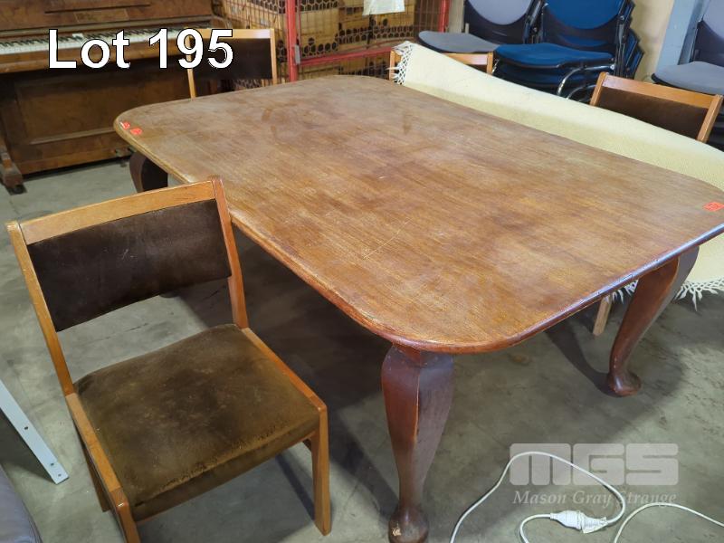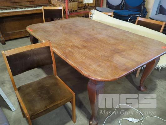 TIMBER DINING DINING TABLE 183 X 123 CM. WITH 4 X PADDED FELT TIMBER CHAIRS