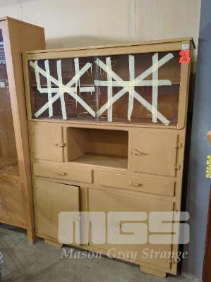 VINTAGE DECO KITCHEN DRESSER, SLIDING GLASS DOORS, 2-DRAWER, 4-DOOR 130 X 37 X 173 CM (W D H)