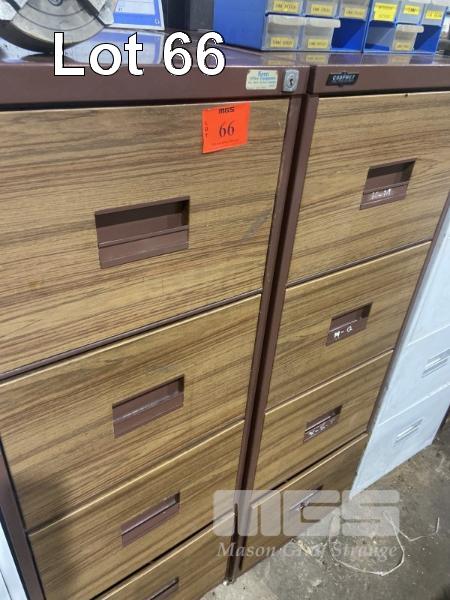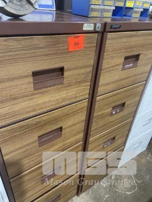 3 x STEEL GODFREY 4 DRAWER FILING CABINETS, TIMBER LOOK DRAWERS