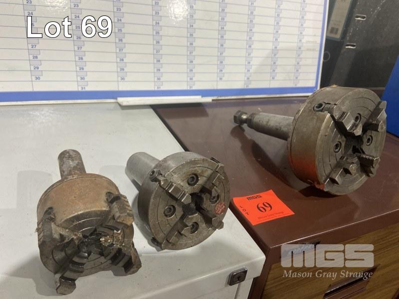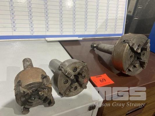 3 x 4 JAW LATHE CHUCKS, 75, 100, 1500mm, PRATT , ETC.