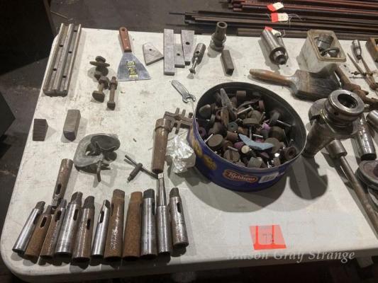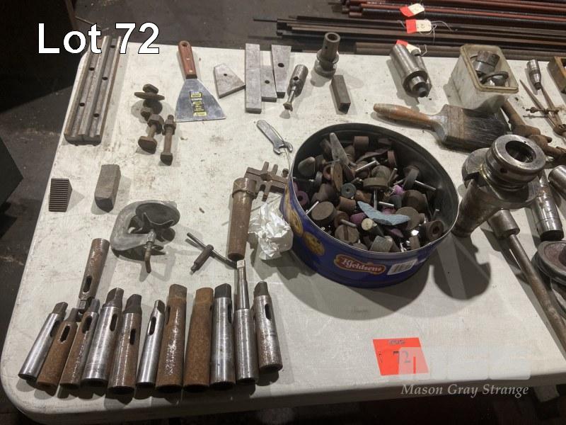 CONTENTS OF TABLE, M/T SLEEVES, TOOL HOLDERS, CLAMP BOLTS, THREADED ROD, VARIOUS HARDWARE