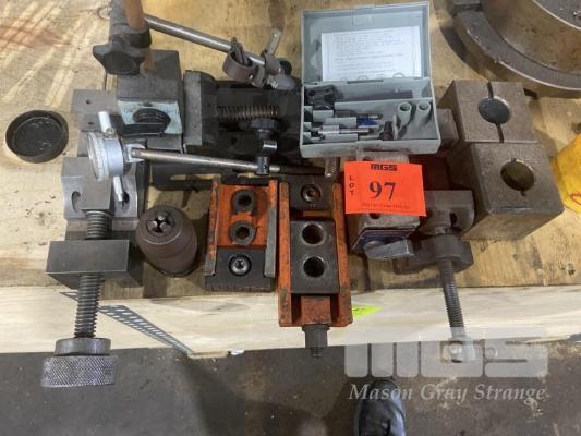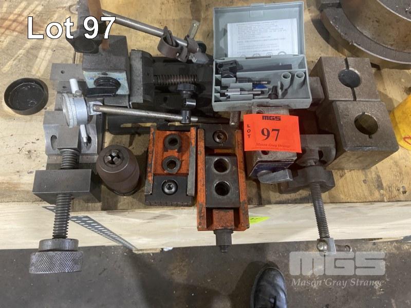3 x SMALL MACHINE VICES, 2 x MAGNETIC DIAL BASES, KEYLESS DRILL CHUCK & ASSORTED MACHINE BLOCKS