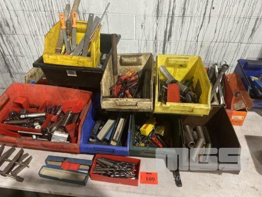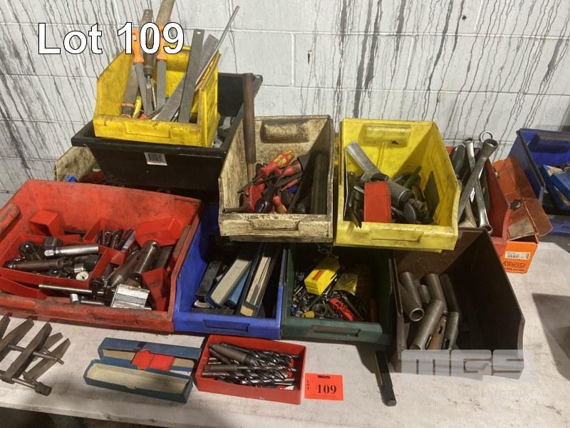 ASSORTED LOT MACHINE TOOLING, SLEEVES, MILLING CUTTERS, DRILL BITS, COLLET CHUCKS & HAND TOOLS