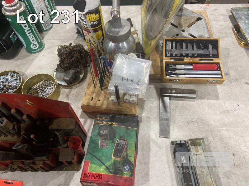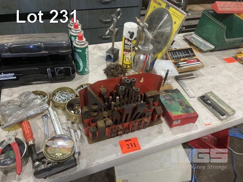 CLAMPING KIT, SPRAY GUN, DRILL STAND, HARDWARE, KNIFE SET, STEEL SQUARE