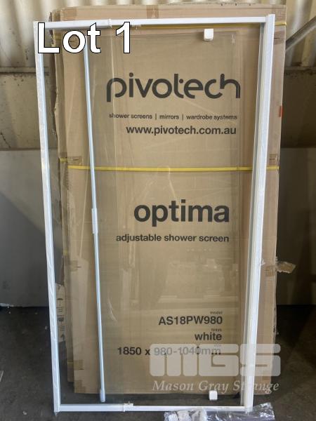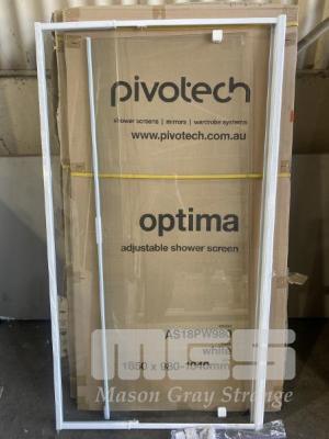1 x PIVOTECH OPTIMA ADJUSTABLE SHOWER SCREENS, WHITE FRAME, MODEL: AS18PW980, 1850 x 980 - 1040mm, NEW IN BOXES