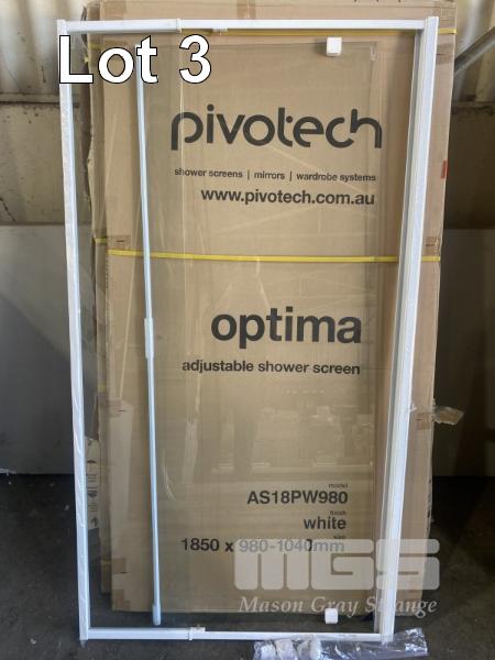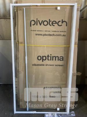1 x PIVOTECH OPTIMA ADJUSTABLE SHOWER SCREENS, WHITE FRAME, MODEL: AS18PW980, 1850 x 980 - 1040mm, NEW IN BOXES