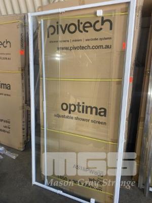 2 x PIVOTECH OPTIMA ADJUSTABLE SHOWER SCREENS, WHITE FRAME, MODEL: AS18PW800, 1850 x 800 - 860mm, NEW IN BOXES