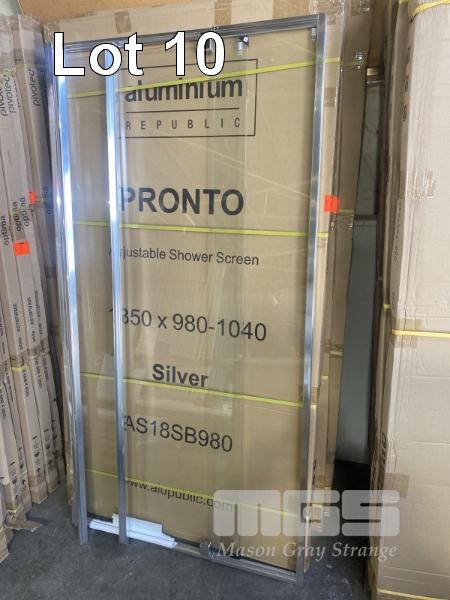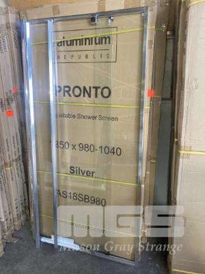 2 x ALUMINIUM REPUBLIC PRONTO ADJUSTABLE SHOWER SCREENS, SILVER FRAME, MODEL: AS18SB980, 1850 x 980 - 1040mm, NEW IN BOXES
