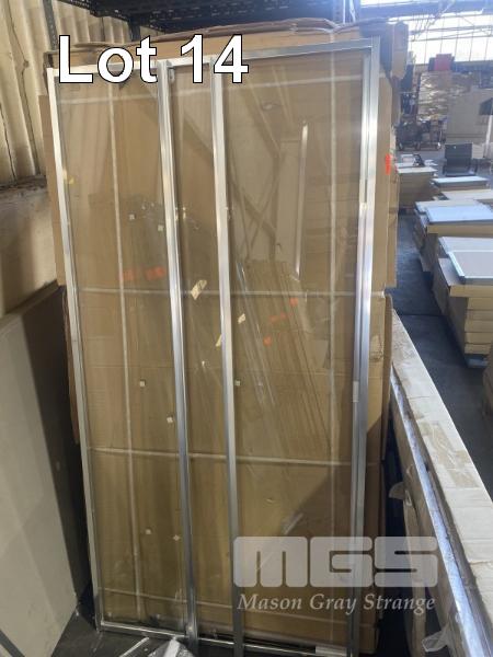 2 x OZ WHOLESALE SUPPLIERS OCEANIA ADJUSTABLE SHOWER SCREENS, BRIGHT SILVER FRAME, 1950 x 980 -1060mm, NEW IN BOXES