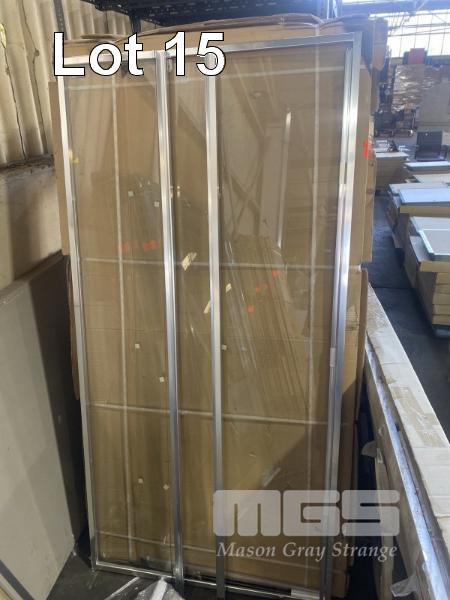 2 x OZ WHOLESALE SUPPLIERS OCEANIA ADJUSTABLE SHOWER SCREENS, BRIGHT SILVER FRAME, 1950 x 980 -1060mm, NEW IN BOXES