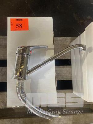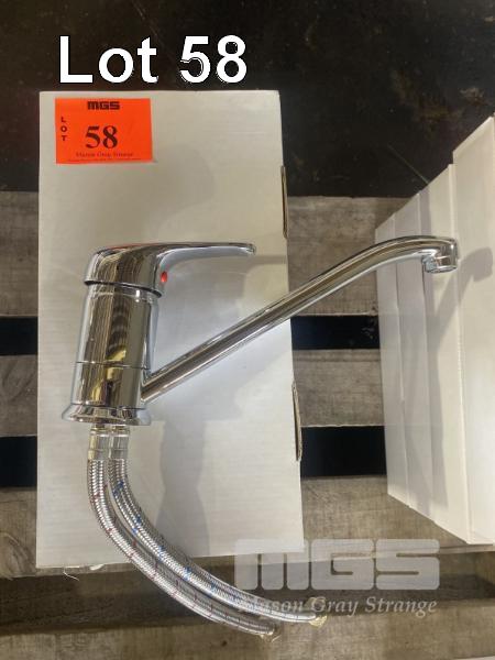 4 x SINK HOT/COLD MIXERS, CHROME, WITH FITTINGS, NEW IN BOX