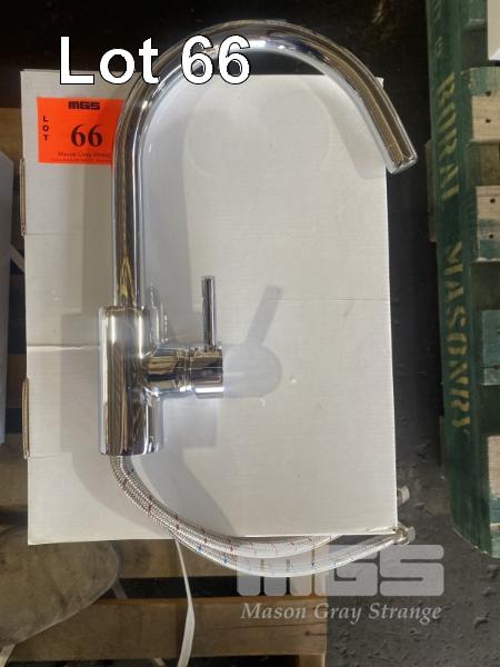 4 x TALL SINK HOT/COLD MIXERS, CHROME, WITH FITTINGS, NEW IN BOX