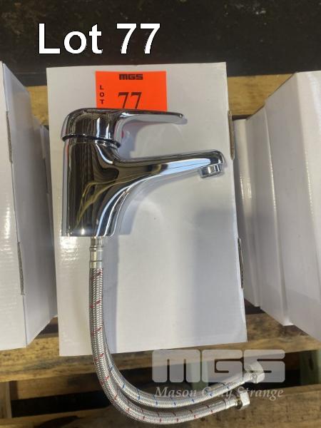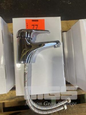 4 x SHORT SINK HOT/COLD MIXERS, CHROME, WITH FITTINGS, NEW IN BOX