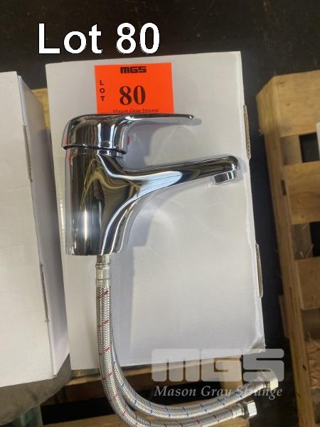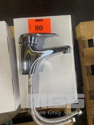 4 x SHORT SINK HOT/COLD MIXERS, CHROME, WITH FITTINGS, NEW IN BOX