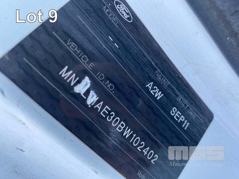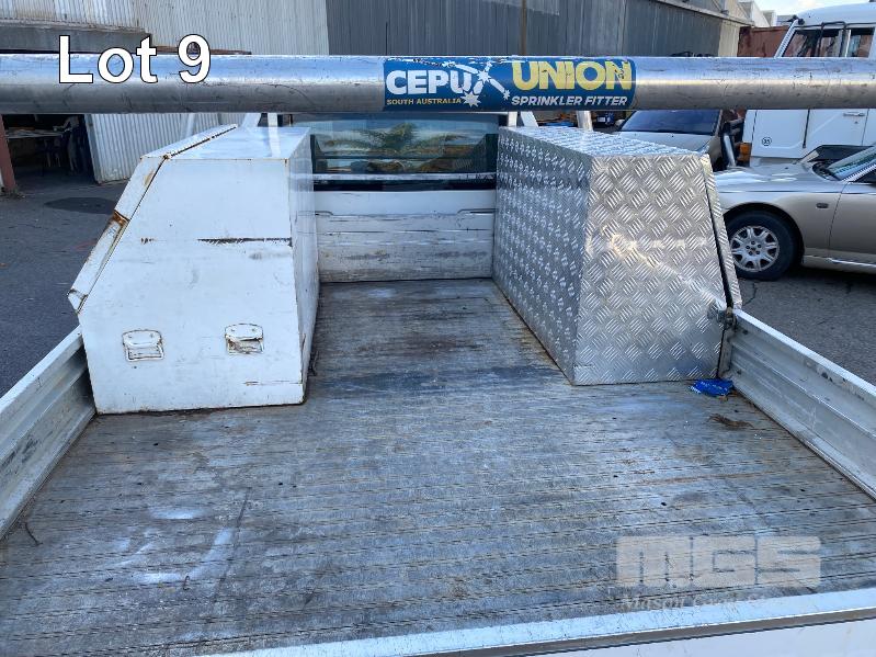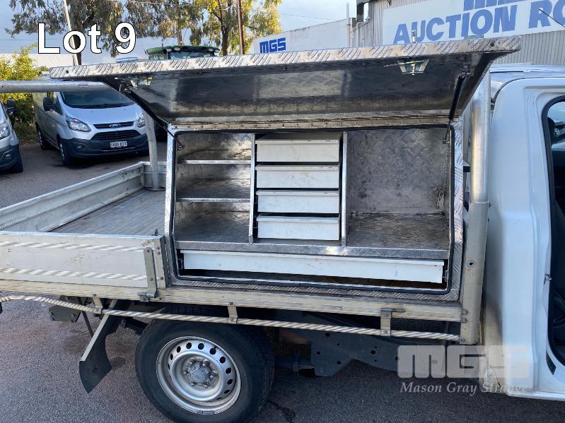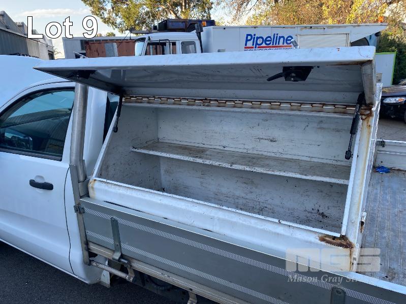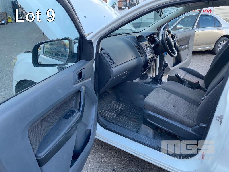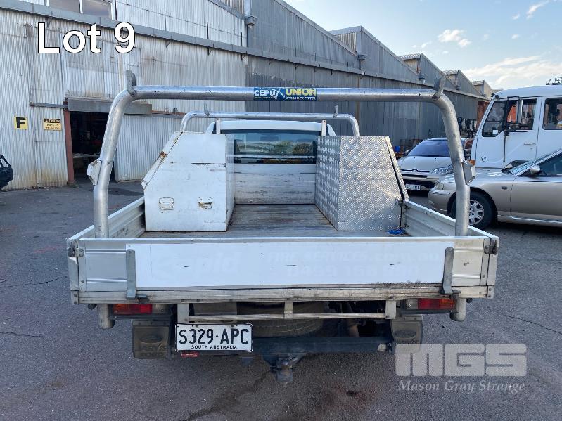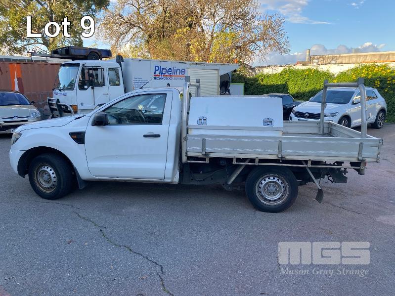 2011 FORD RANGER 2 PX SINGLE CAB TRAY TOP UTILITY REG: S329 APC VIN: MNALMAE30BW102402 ENG: DPAT1001085 ODO: 222, 917 kms INDICATED 2.5 LTR EFI, 5 SPEED MANUAL, WHITE DUCO, 2 DOORS, 2 SEAT, ABS, AIR BAG, AIR CON, BLUETOOTH, CD PLAYER, CENTRAL LOCKING, CRUISE CONTROL, IMMOBILISER, POWER STEERING, POWER WINDOWS, SPARE WHEEL, TOW BAR, 2 x TRAY MOUNT TOOL BOXES ALLOY LADDER RACK KEY #62 (NO PAPERS, WITH 1 KEY/S, WITH OWNER'S MANUAL, WITH SERVICE BOOKS) CONDITION: FRONT LH GUARD - MINOR IMPACT DAMAGE