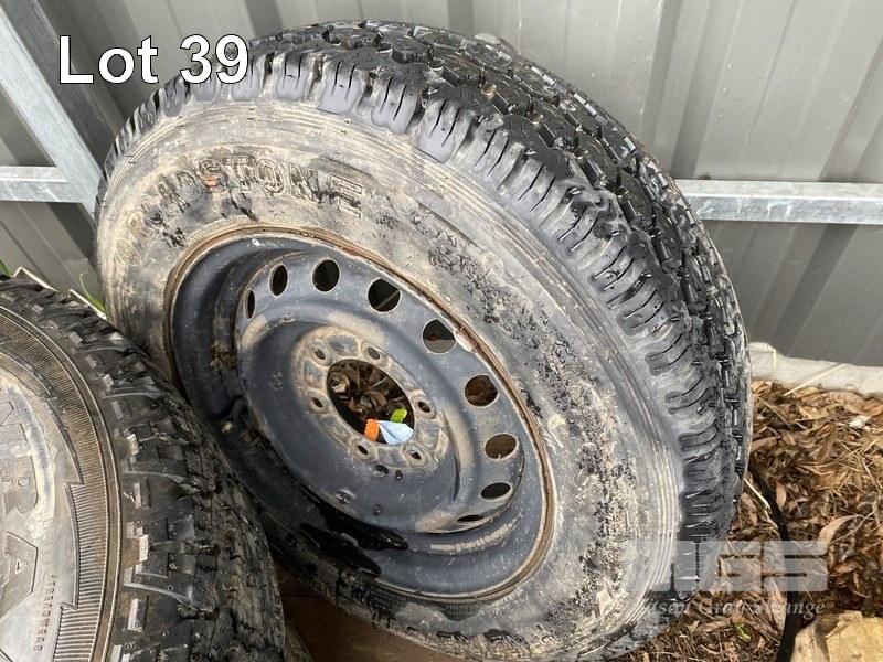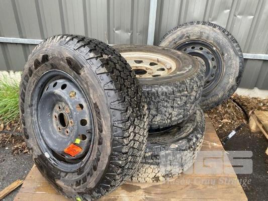 4 x TYRES & RIMS, STEEL 6 STUD, 205R16C 100/108R