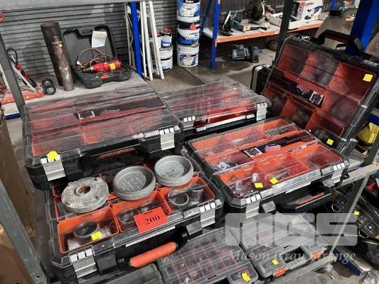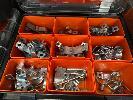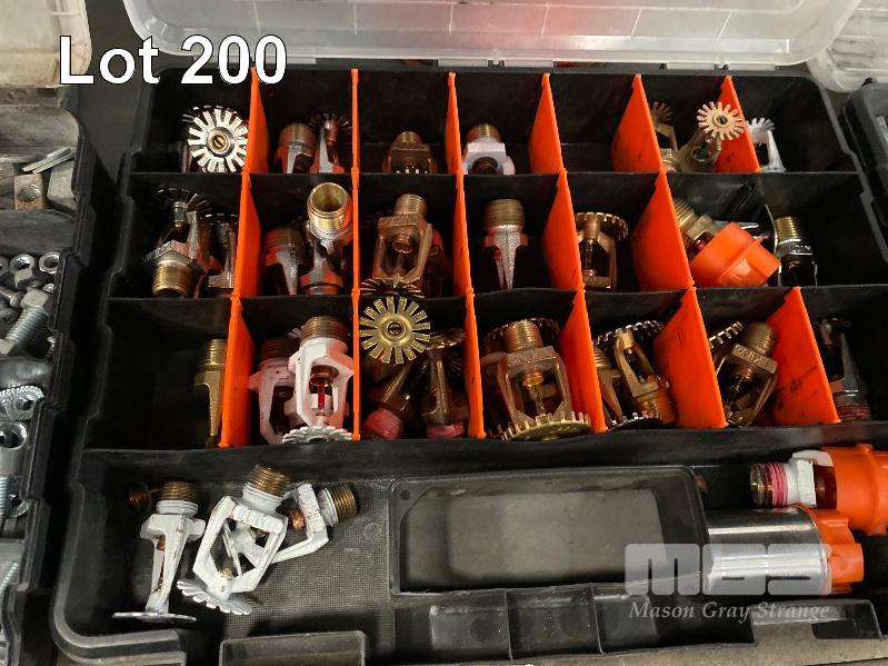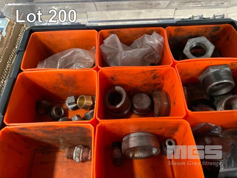9 x GRAB KITS WITH QUANTITY ASSORTED GALV PIPE FITTINGS, MOUNTS, JOINERS, FIRE SPRINKLER HEADS, DYNA BOLTS, ETC 2 x SHELVES