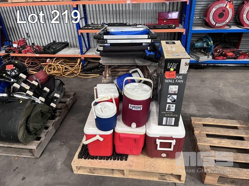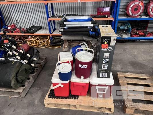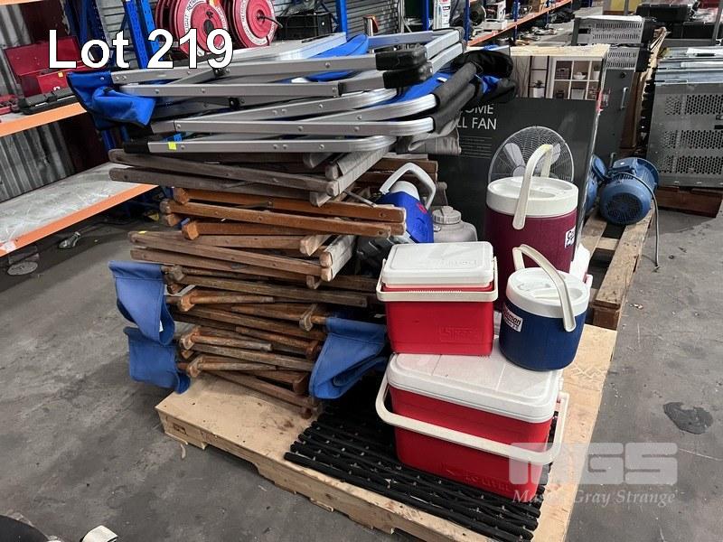 ESKY'S, DECK CHAIRS, FAN, WATER CONTAINER, ETC