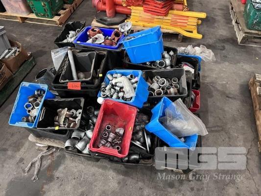 GALV STEEL PIPE FITTINGS, INC BENDS, JOINERS, T PIECES, REDUCERS, ETC, ASSORTED SIZES 1 x PALLET
