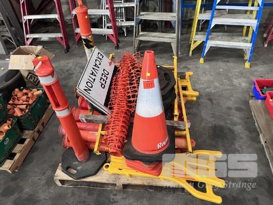 SAFETY CONES, BOLLARDS & 2 x WORK HORSES, 1 x PALLET