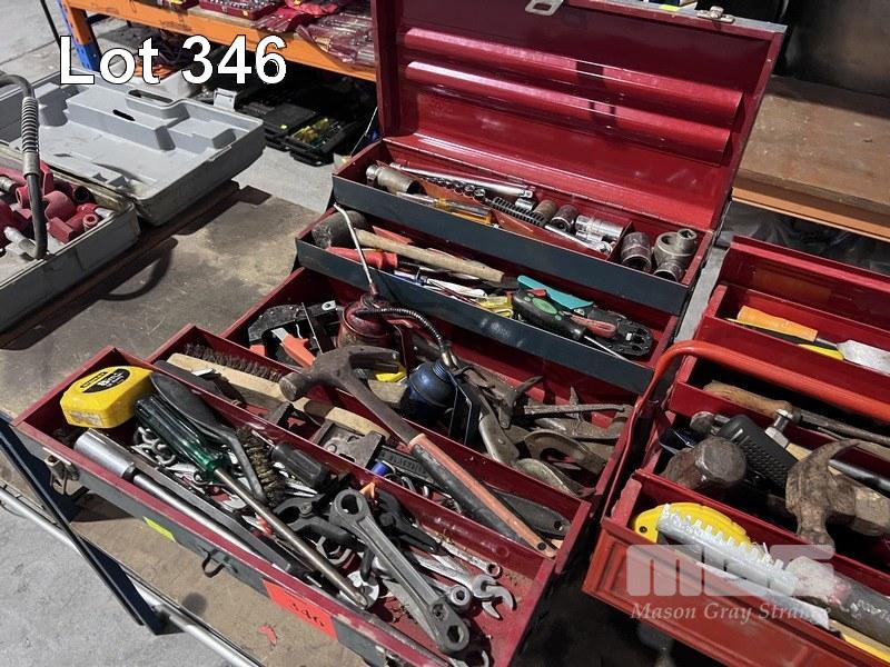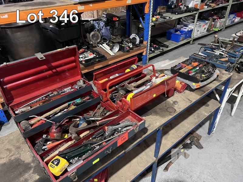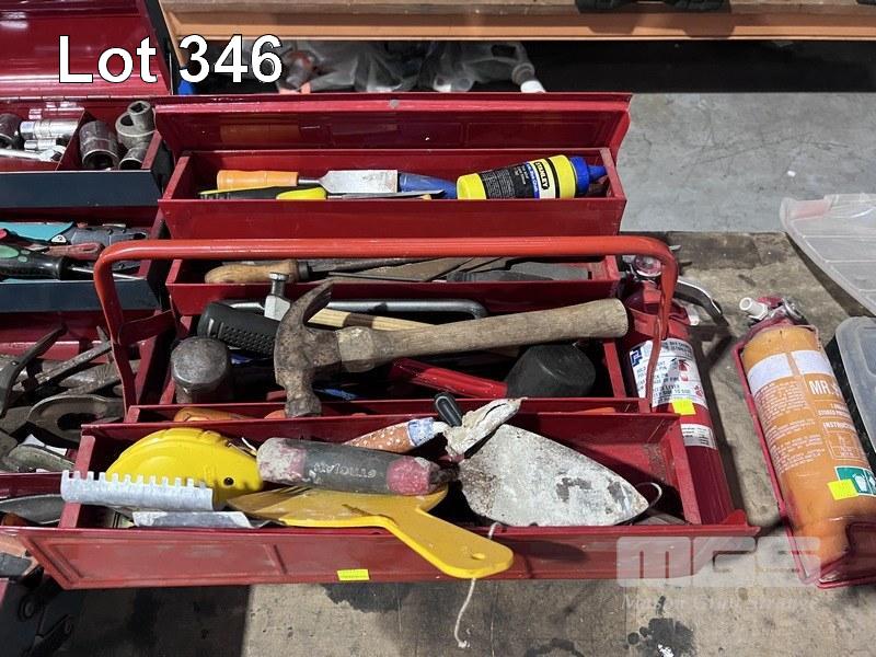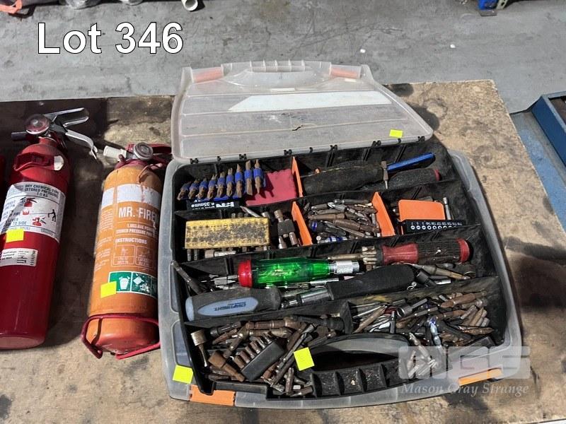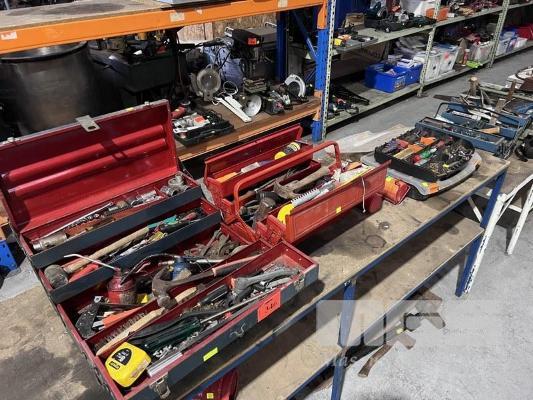 2 x TOOL BOXES & HAND TOOLS INCLUDING SOCKET SETS, HAMMERS, CUTTERS, CRIMPERS, 1 x GRAB KIT WITH HUGE QUANTITY DRIVER BITS & 2 x FIRE EXTINGUISHERS