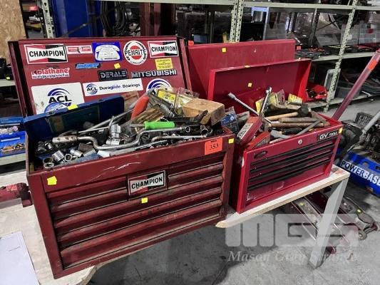 2 x TOOL CHESTS, MULTI DRAWER & CONTENTS ASSORTED TOOLS, INC SOCKET SETS, VICE GRIPS, HAMMERS, FILES, CHISELS, DRIVERS, PUNCHES, CUTTERS, ETC