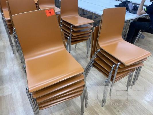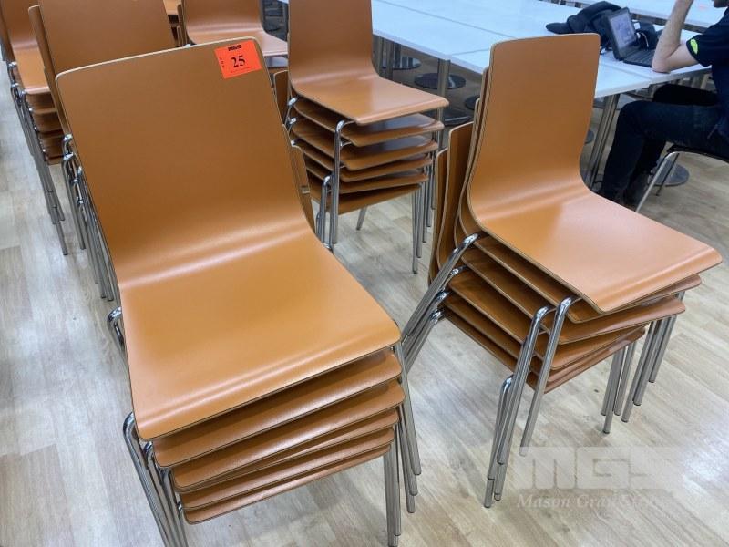 12 x MOULDED PLYWOOD CAFE CHAIRS, TAN, CHROME LEGS