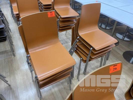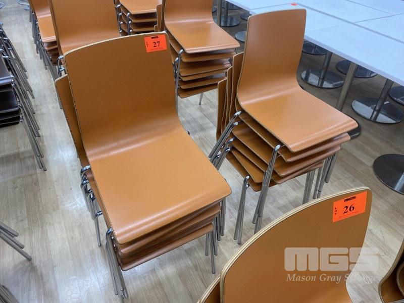 12 x MOULDED PLYWOOD CAFE CHAIRS, TAN, CHROME LEGS