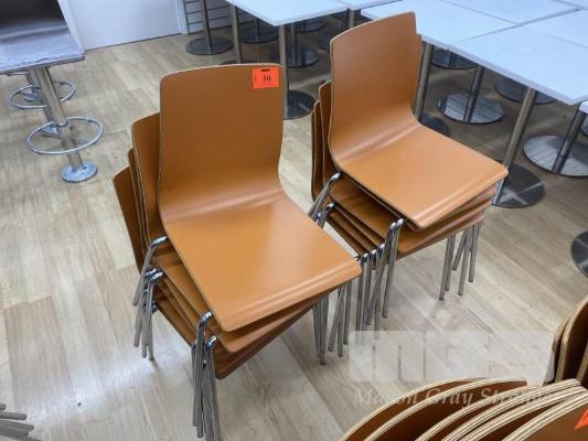 12 x MOULDED PLYWOOD CAFE CHAIRS, TAN, CHROME LEGS