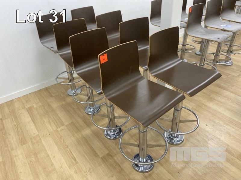 8 x MOULDED PLYWOOD CAFE STOOLS, FIXED BASE, CHROME BASE
