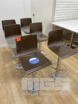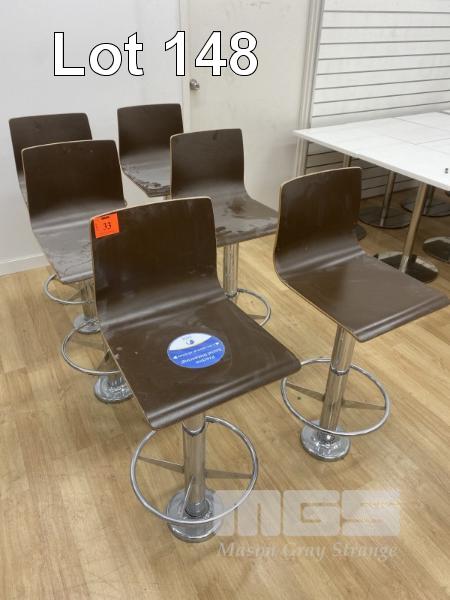 6 x MOULDED PLYWOOD CAFE STOOLS, FIXED BASE, CHROME BASE