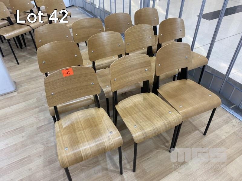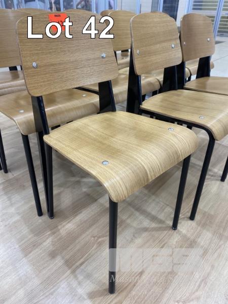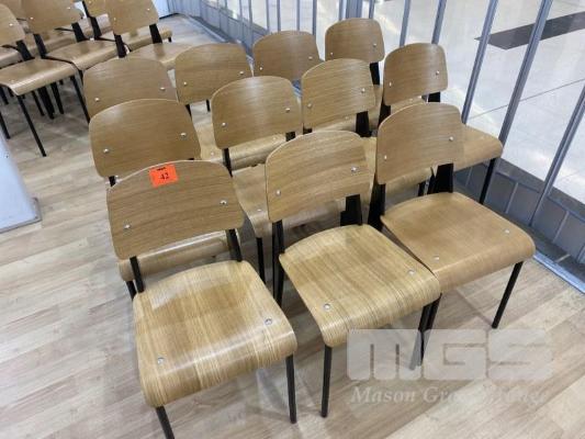 11 x MOULDED TIMBER CAFE CHAIRS, BLACK FRAME