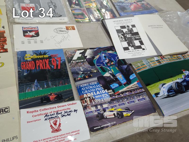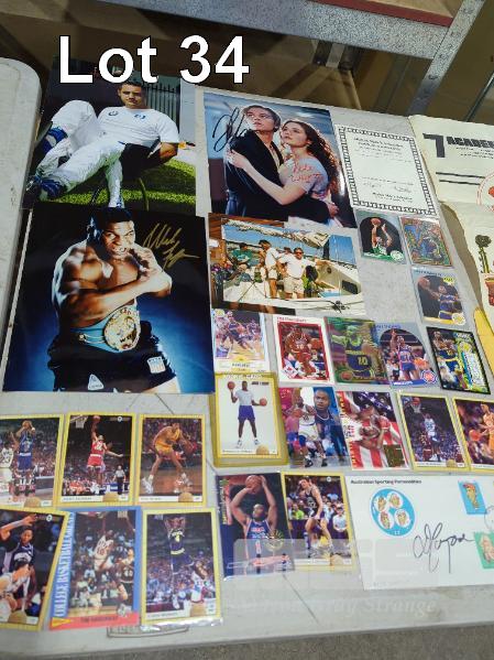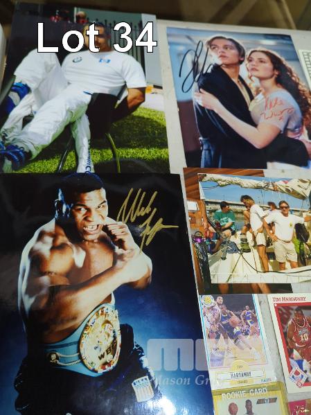 COLLECTABLE CELEBRITY PHOTOGRAPHS & OTHER MEMORABILIA. INCLUDES SCENE FROM TITANIC, MIKE TYSON, BASKETBALL TRADING CARDS, F1 PROGRAMMES, AYRTON SENNA FANDOM ETC.