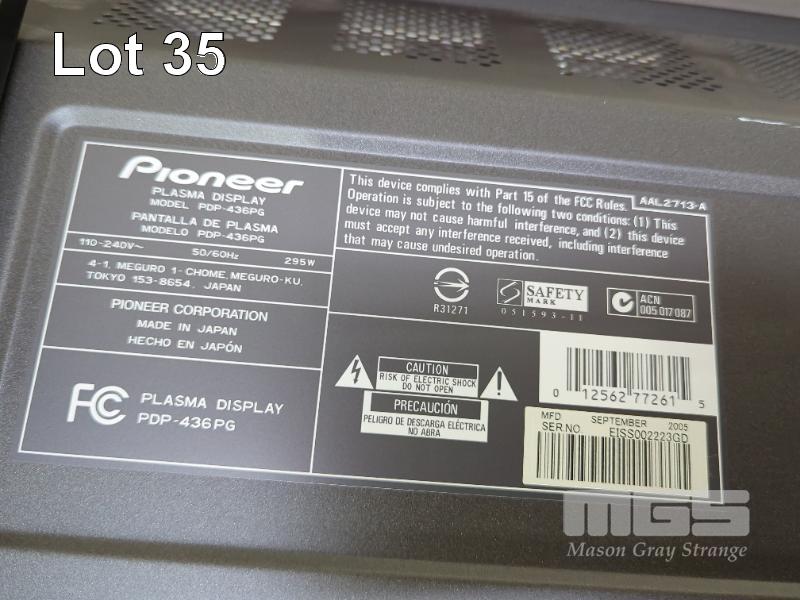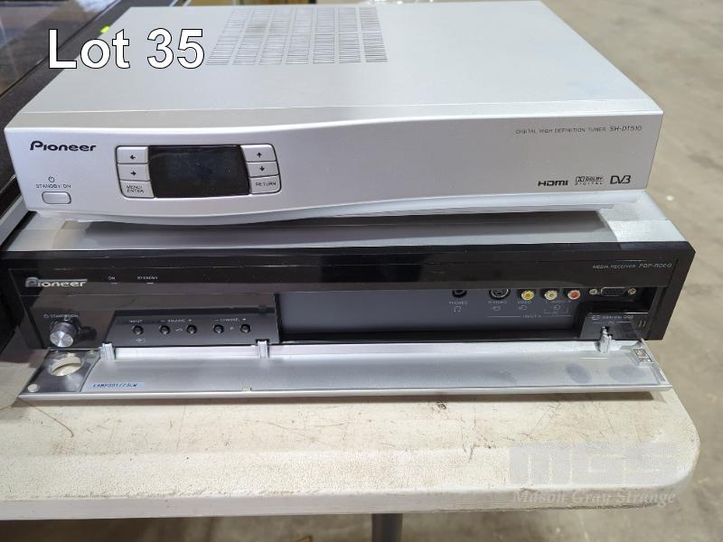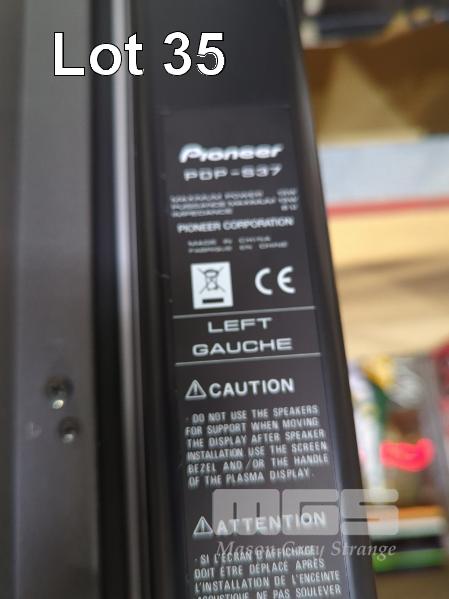 PIONEER PLASMA TV SYSTEM INCLUDES 43" PIONEER PDP-436PG PLASMA DISPLAY, PDP-S37 SPEAKER SYSTEM, PIONEER SH-DT510 DIGITAL HIGH DEFINITION TUNER, PIONEER PDP-RO6G MEDIA RECEIVER, REMOTES, CABLES AND WALL MOUNTING BRACKET. (CONTENTS TABLE AND CARTON) ** POSSIBLE MALFUNCTION **
