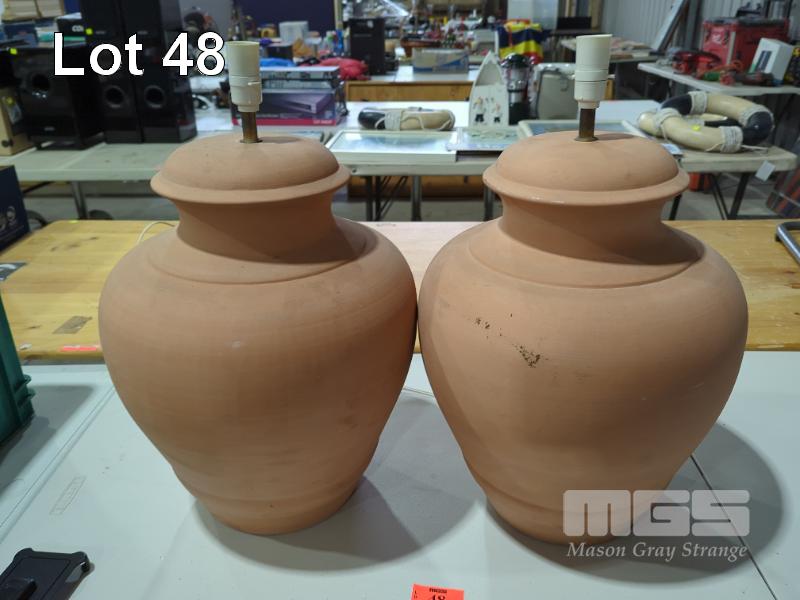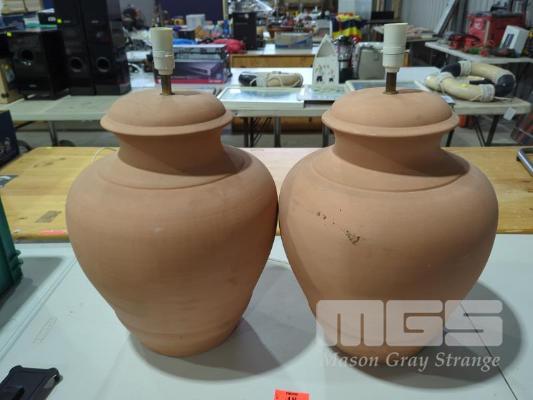 2 X LARGE TERRACOTTA TABLE LAMPS, BASES ONLY.