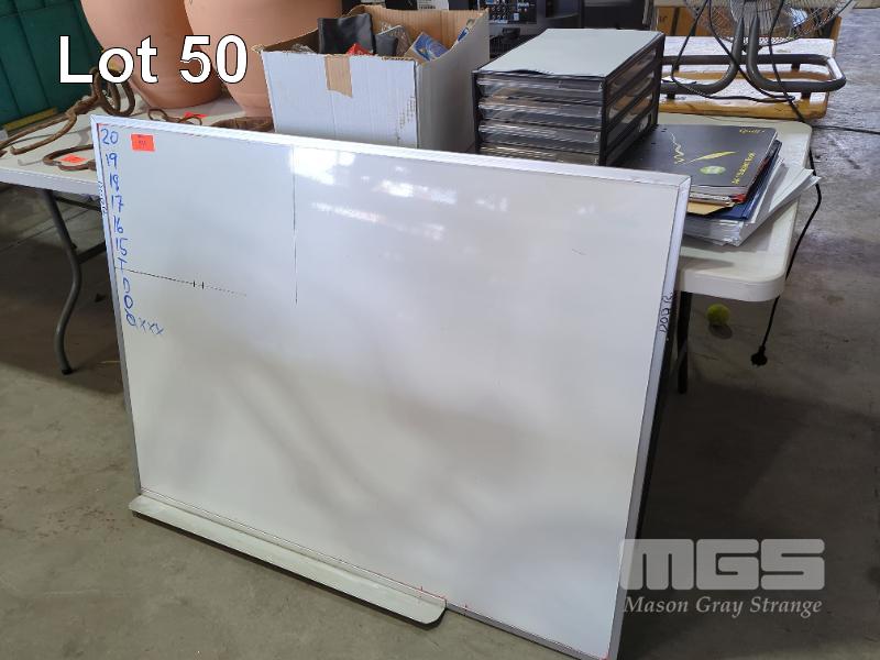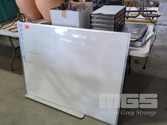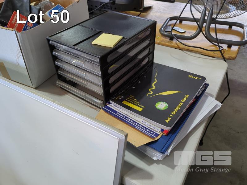 WALL MOUNTED MAGNETIC WHITEBOARD (120 X 90 CM W H), DOCUMENT TRAYS, STATIONERY, NOTEBOOKS AND LARGE QUANTITY OF OFFICE SUPPLIES INCLUDING WHITEBOARD MARKERS, HIGHLIGHTERS, PENS, PENCILS, STAPLES, STICKERS ETC. (PART TABLE & 1 X BOX)