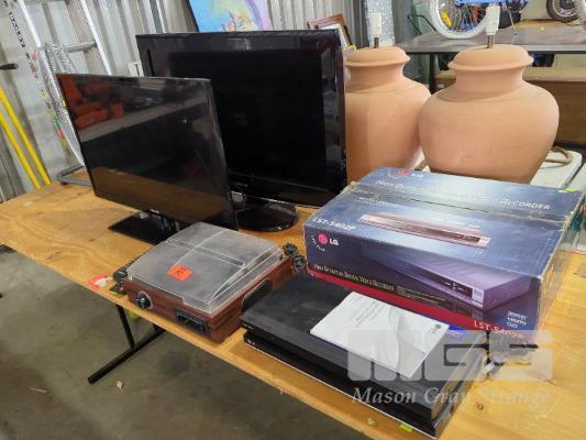 2 X 32CM REMOTE LCD TV WITH LG HDD VIDEO RECORDER, BLUE RAY DVD PLAYERS,USB VINYL TO CASSETTE RECORDER
