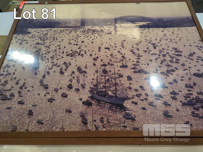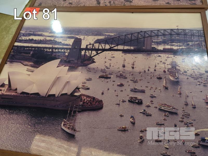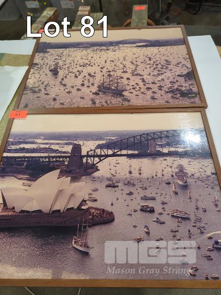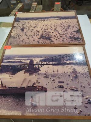 2 X FRAMED AERIAL PHOTOGRAPHS OF THE TALL SHIPS FLEET SYDNEY HARBOR AUSTRALIAN BICENTENARY CELEBRATIONS 1988. (66 X 55 CM W H).
