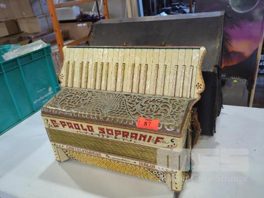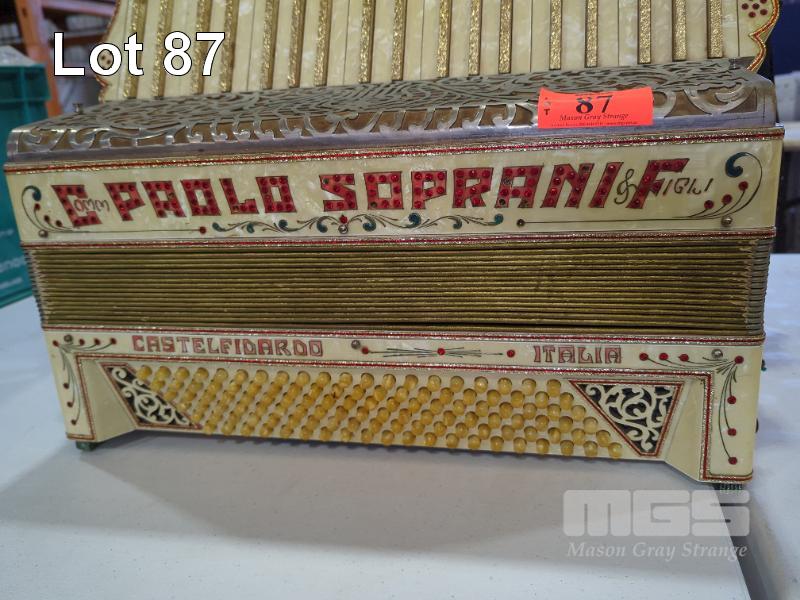 ANTIQUE PAOLO SOPRANI & FIGLI PIANO ACCORDION "CASTELFIDAROO ITALIA" AND CASE.