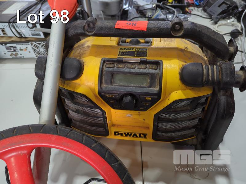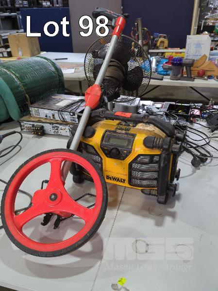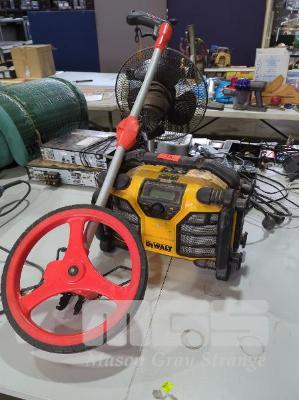 LUFKIN PSMW 32M FOLDING MEASURING WHEEL AND DEWALT WORKSITE RADIO/CHARGER MODEL DCR017