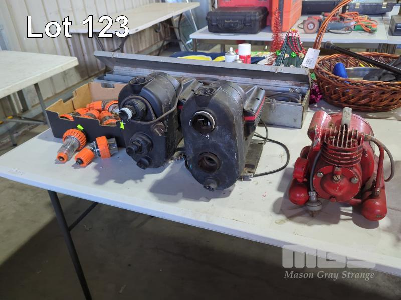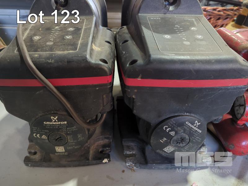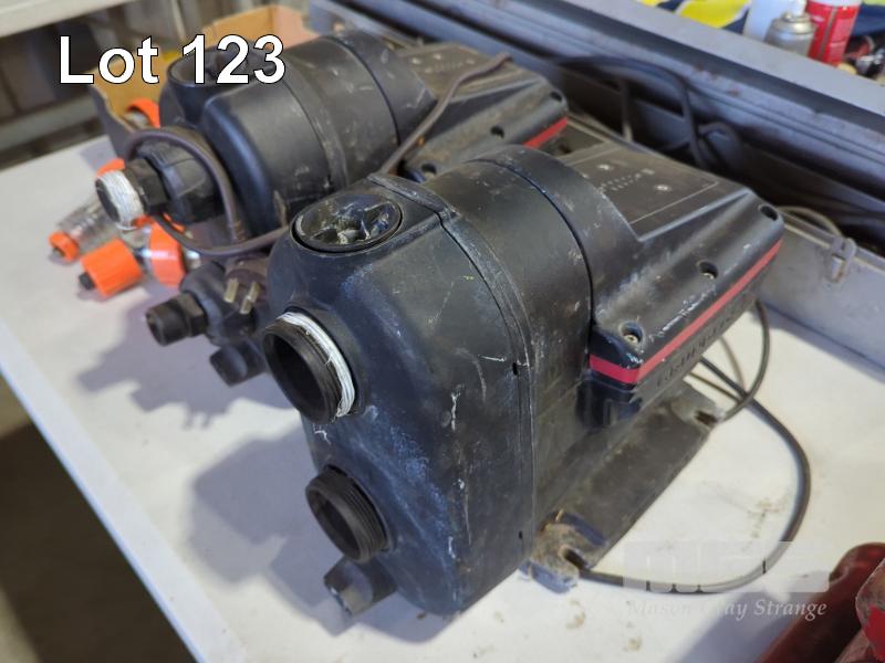 2 X GRUNDFOS SCALA2 VARIABLE SPEED PRESSURE PUMPS. CLISBY PORTABLE AIR COMPRESSOR, 6 X CLIPSAL 32 AMP QUIK CONNECT POWER CONNECTORS, 2 X CLIPSAL 20 AMP QUIK CONNECT POWER CONNECTORS AND 2 X WATERPROOF FLUORESCENT SUSPENDED WORK LAMPS.