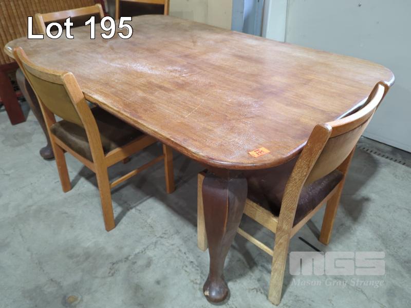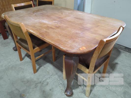 RUSTIC TIMBER DINING DINING TABLE (183 X 123 X 75 CM W D H) WITH 4 X PADDED TIMBER DINING CHAIRS