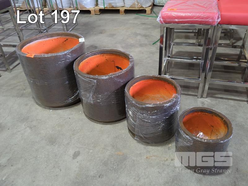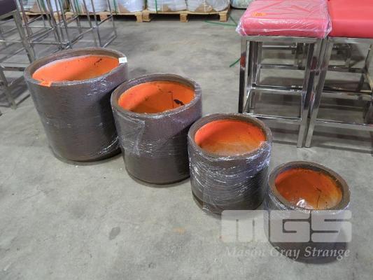 SET OF 4 X CONTEMPORARY PLANTER POTS. COLOUR CORTEN. NEW, NESTED PACKED.