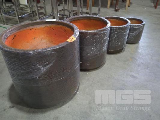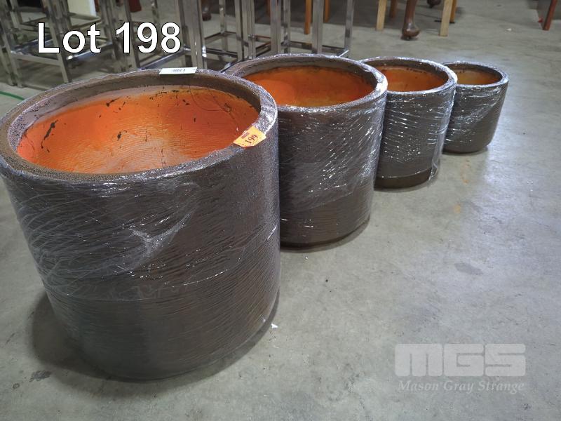 SET OF 4 X CONTEMPORARY PLANTER POTS. COLOUR CORTEN. NEW, NESTED PACKED.