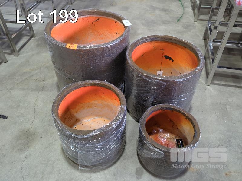 SET OF 4 X CONTEMPORARY PLANTER POTS. COLOUR CORTEN. NEW, NESTED PACKED.