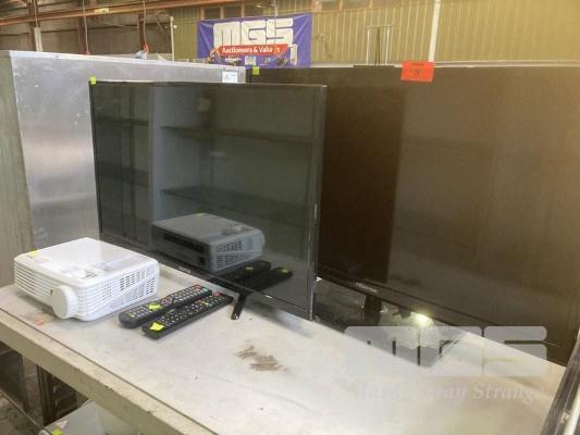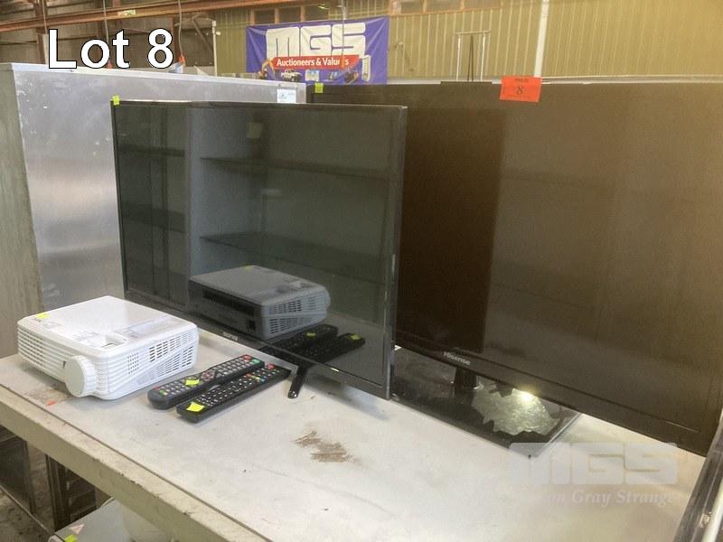 2 x 32" LCD REMOTE TV'S, SONIQ & HISENSE WITH NEC PROJECTOR