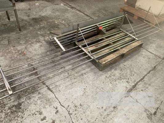 2 x PIPE POT RACKS, 330cm & 180cm & WALL SHELF, 160cm