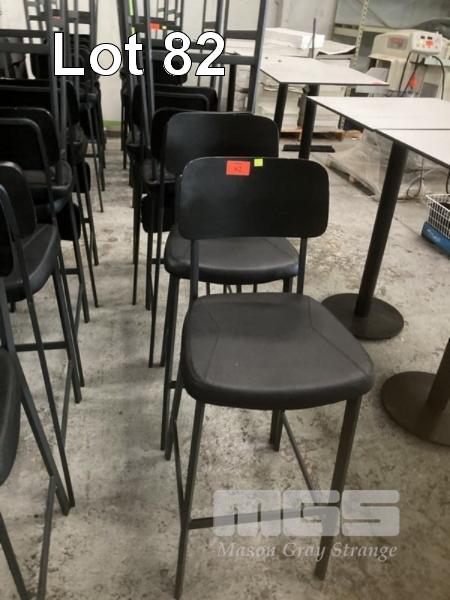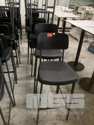6 x BAR STOOLS, BLACK VINYL SEAT, STEEL FRAME