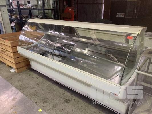 DELI DISPLAY FRIDGE, EUROCRYOR MICRON 250cm BOW GLASS, OPEN FRONT, 240V NOTE: MISSING 1 x GLASS SIDE PANEL