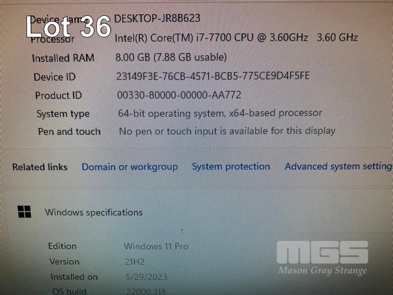 DESKTOP PC, HP PRODESK 600 G3 SFF, CORE i7 7700 (7TH GEN) @ 3.6GHz, 8GB DDR4 RAM, 256GB SSD, DVD-RW, INTEL HD VIDEO, 10 x USB, 1 x USB-C, WINDOWS 11 PRO INSTALLED (NO KEYBOARD, NO MOUSE) S/N:AUD8040993